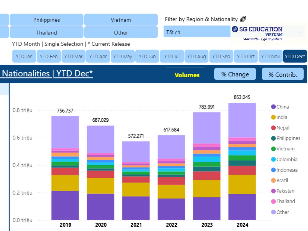 Úc từ lâu đã trở thành một trong những điểm đến hàng đầu của sinh viên quốc tế nhờ nền giáo dục chất lượng cao, môi trường sống an toàn, đa văn hóa và nhiều cơ hội nghề nghiệp sau tốt nghiệp. Theo thống kê mới nhất từ Chính phủ Úc, tính đến tháng 12 năm 2024, có tới 1.095.298 sinh viên quốc tế đăng ký nhập học tại các cơ sở giáo dục trên toàn quốc, tăng 15% so với cùng kỳ năm 2019 – thời điểm trước khi đại dịch COVID-19 bùng phát. Đây là minh chứng rõ ràng cho sức hút mạnh mẽ của nền giáo dục Úc trên trường quốc tế, đồng thời cho thấy niềm tin của cộng đồng sinh viên quốc tế với các chính sách phục hồi và phát triển bền vững của nước này.